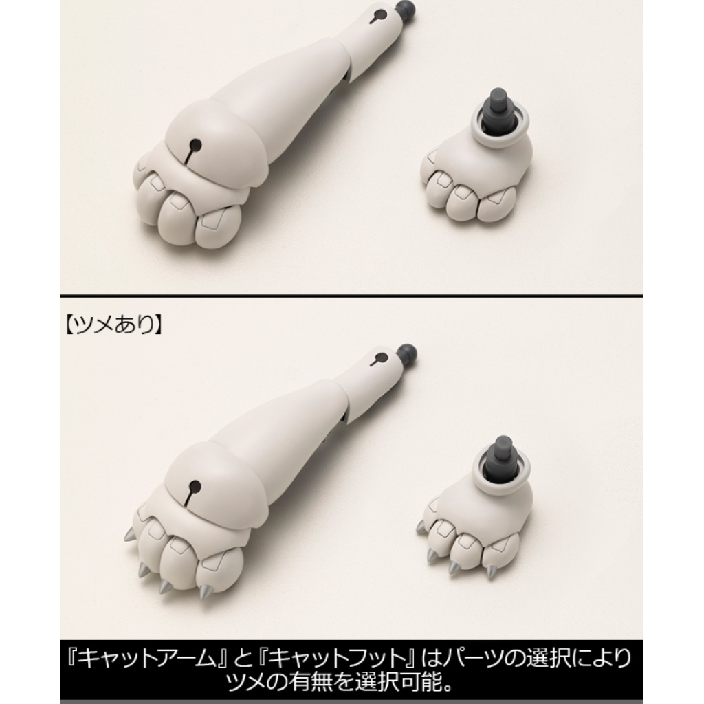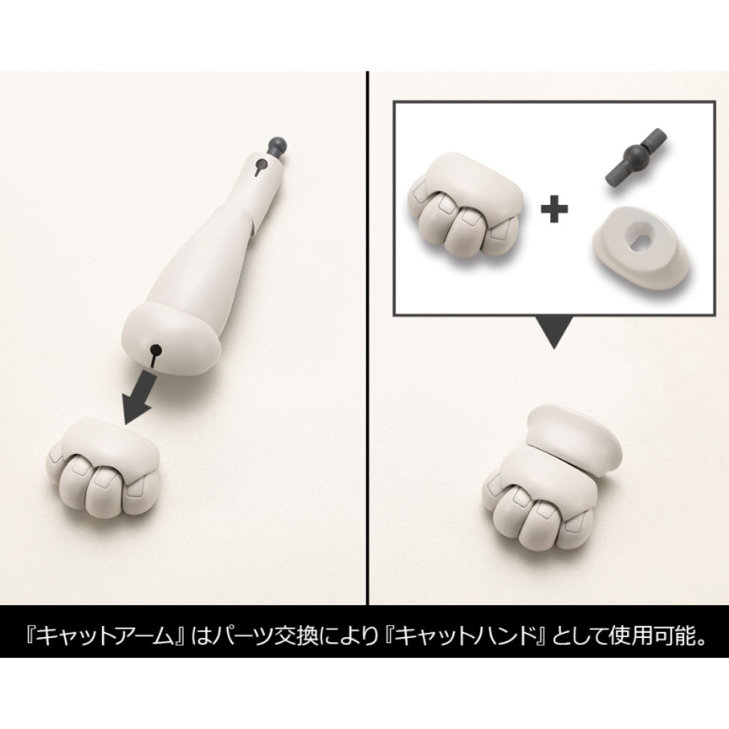 ■貓臂可透過肩膀的球形接頭或 3mm 孔連接到 Frame Arms Girl、Megami Device 等。透過重新排列零件,它還可以用作貓手。