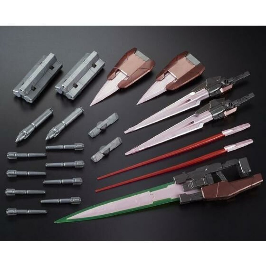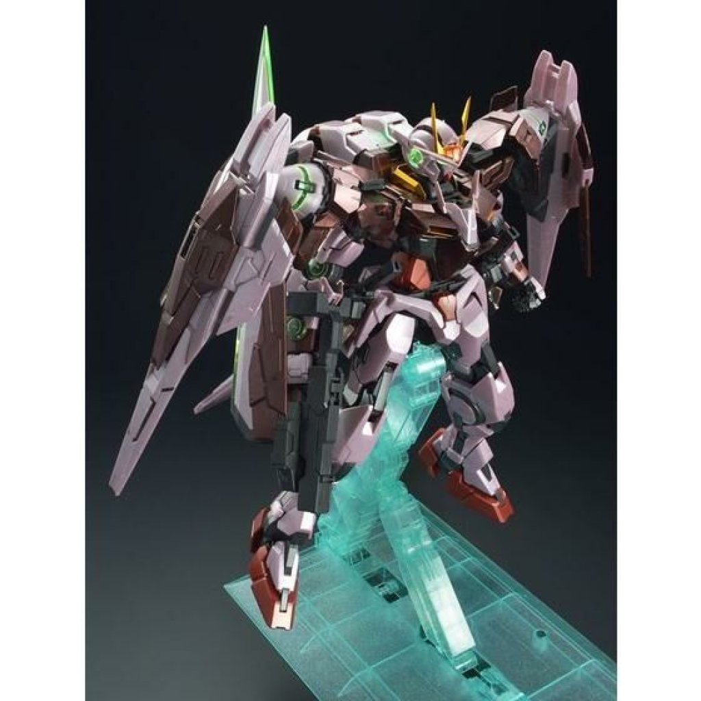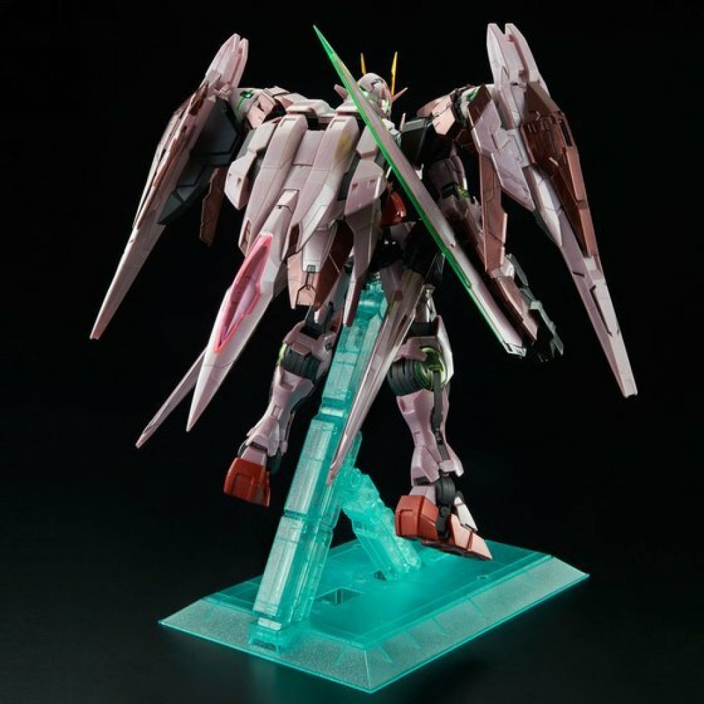 The kit used for the "PG 1/60 TRANS-AM RAISER" is the same as the regular version released in 2009, with features such as a rotating and glowing solar furnace and a shoulder fixing mechanism. The overall molding color has been updated to TRANS-AM's metallic red style, the LED lights have also been changed to a brighter green than the regular version, and the blade-shaped antenna has been electroplated to give it a rich metallic gold color. The product will also come with the "Mobile Suit Gundam 00" 10th anniversary commemorative LOGO sticker and Trans-AM Raiser special water sticker. The outer box is also full color.