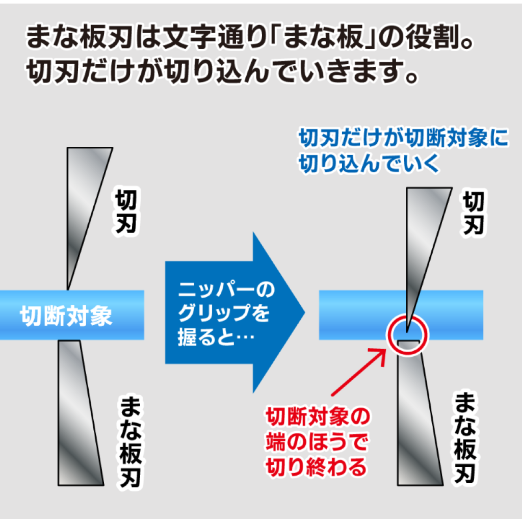 Ultimate Nipper驚人的鋒利度是由其研磨得極薄的 “切刃”及使切割更加平滑的“單刃結構”所實現的。
